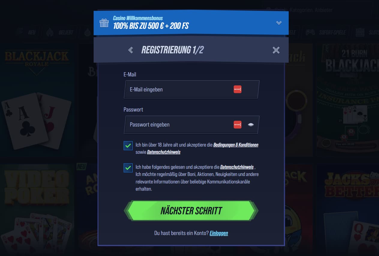 Nach der ersten Einzahlung wird der Bonus im Konto angezeigt. Wichtig sind Mindesteinzahlung, Umsatzbedingungen und die Laufzeit. Lies die Kurzbedingungen vor der Aktivierung, damit du weißt, welche Spiele zählen und wann der Bonus verfällt.